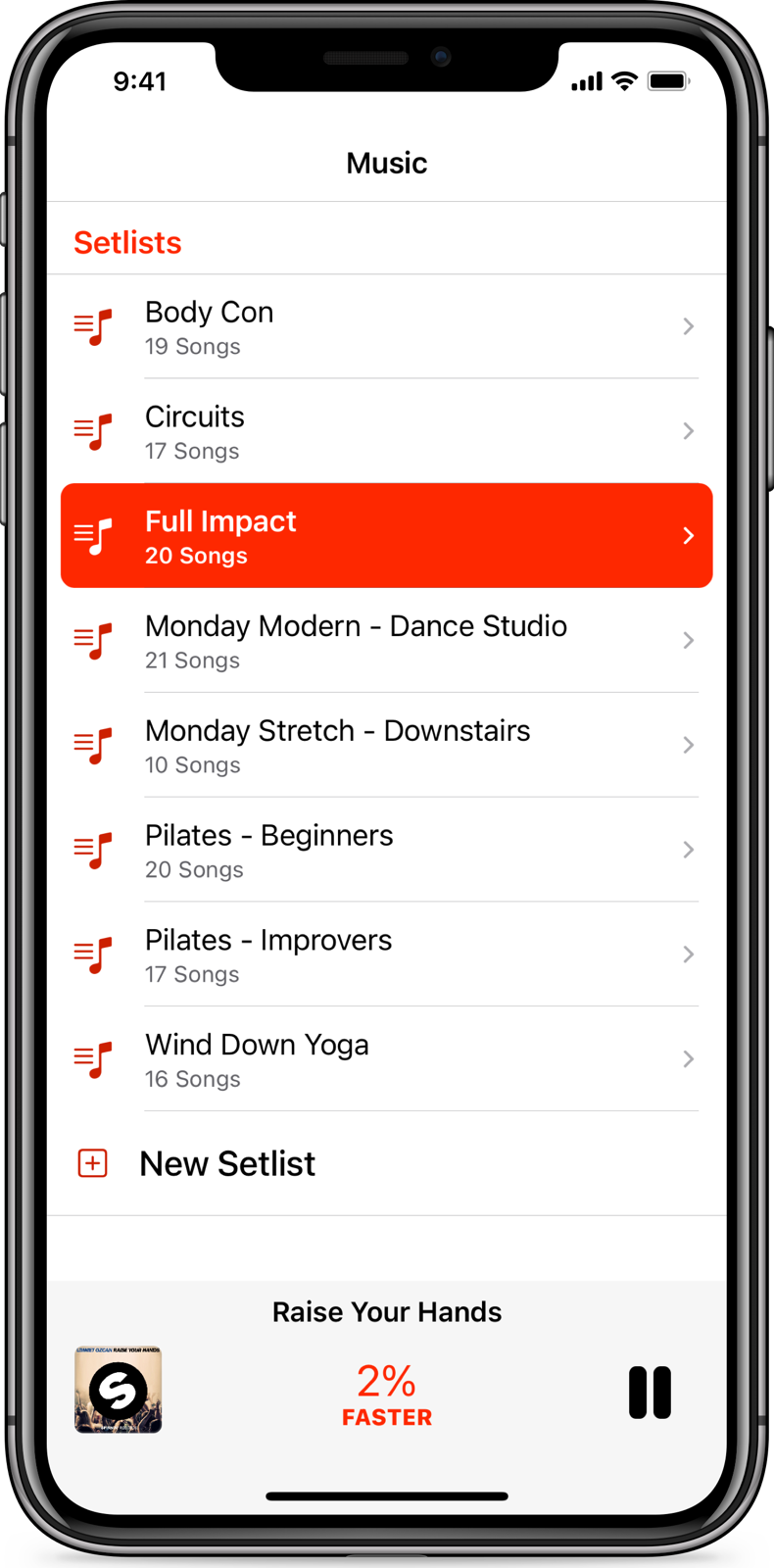 Oraganize songs into Setlists and recall different speeds for different songs. Enjoy continuous play from one song to the next so the music never stops.